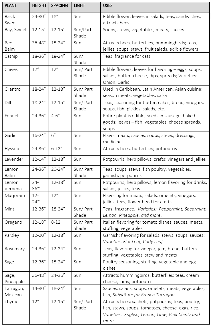 - Plan your herb garden by grouping herbs according to light, irrigation, and soil requirements. Most herbs enjoy full sun, but a few tolerate shade.