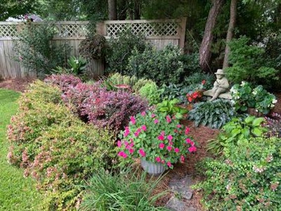 Select and analyze the area in your yard where the project will take place. Most important… soil, sun and water. Have the soil analyzed (Wingard’s and Clemson can help you with this), so you can determine if you will need to amend the soil. Map the sunlight for a day or two to identify how much sun the area receives. Because the afternoon sun is SO HOT here in the summer, you must select plants that can take the heat if you plant in areas that receive sun all day or in the afternoon. Select areas that get more shade for your outdoor gathering spots. Likewise, choose plants that will flourish in shade for these areas. Lastly, investigate and correct any drainage issues and determine how you will water.