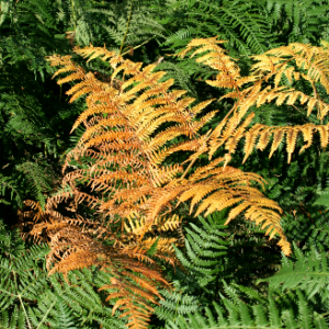 Autumn Fern: For contrast in form in a shady area, try Autumn Fern. This evergreen fern provides interest year-round, but especially in spring when the brown fern stalks reach out and open. Very drought tolerant, growing 3-4 ft. tall and wide. Plant individually or in a group.