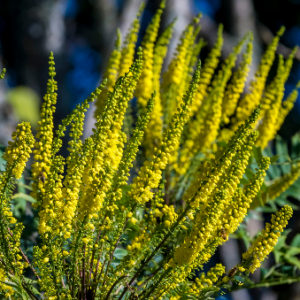 Mahonia: For a striking show in the middle of winter, check out Mahonia. Great for a shady spot, however, a few hours of morning sun encourages the bright yellow blooms. Soft Caress is a low-growing variety (2-3 ft.) that creates a show when grouped together.
